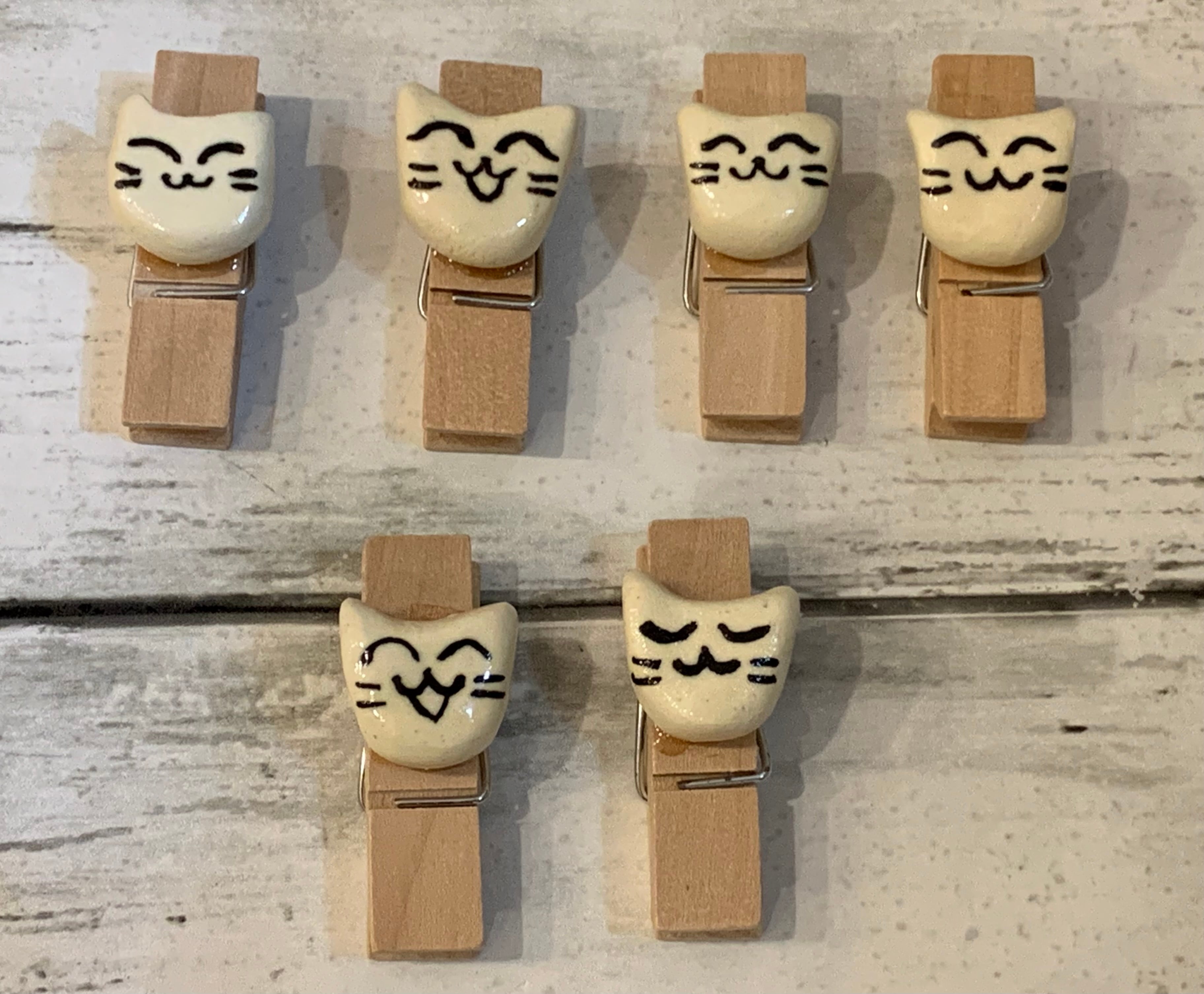 当店手作り陶芸猫ちゃんが付いてる木製万能クリップです。手作りならではの味がありちょっとしたプレゼントにも最適⭐︎